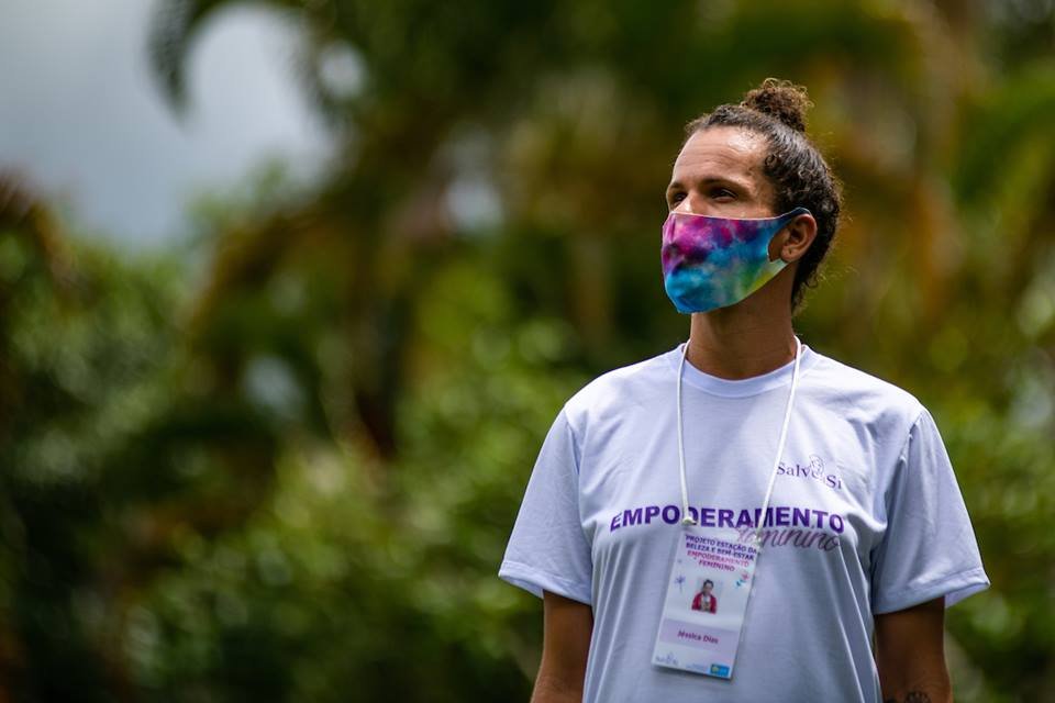 Jéssica Dias, 31, é uma mulher transexual. Natural de Águas Lindas (GO), ela morava na Rodoviária do Plano Piloto até ser resgatada para a comunidade após pedir ajuda quando percebeu que estava ficando muito debilitada por conta do mundo das drogas.