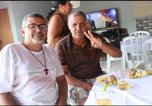 Ao lado de parente, Aldeir faz o “V” de vitória.
