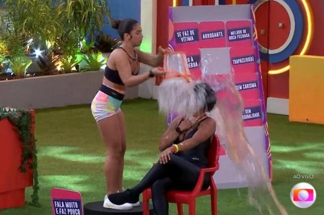 Maria foi desclassificada por acertar balde em Natália, durante jogo da discórdiaFoto: TV Globo / Reprodução